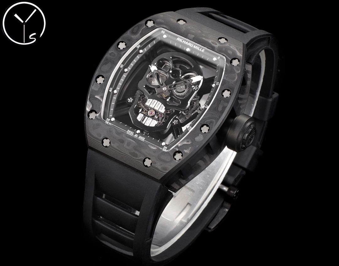 Replica Richard Mille RM 052 Black Carbon Fiber Case Skeleton Skull Dial Men’s Luxury Watch