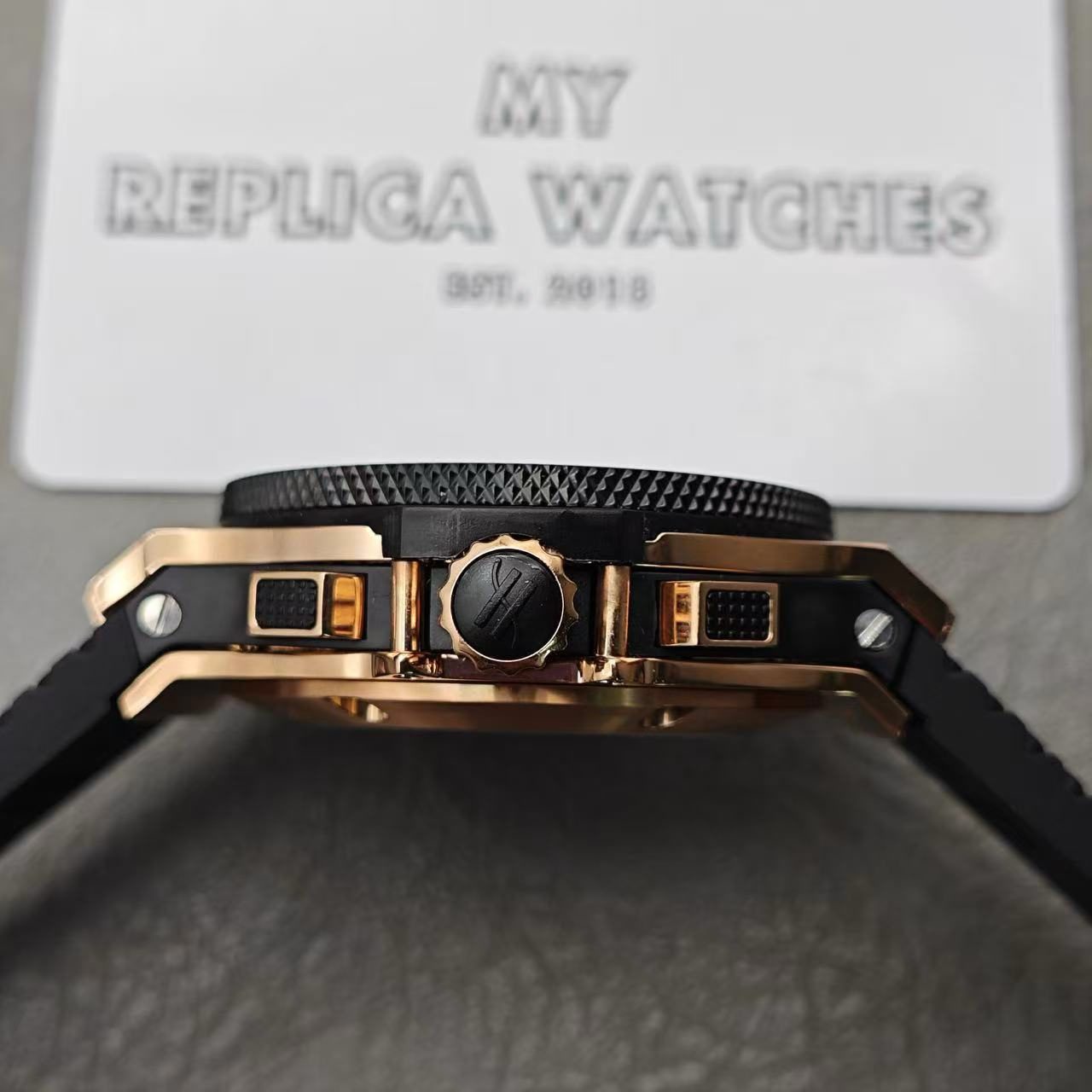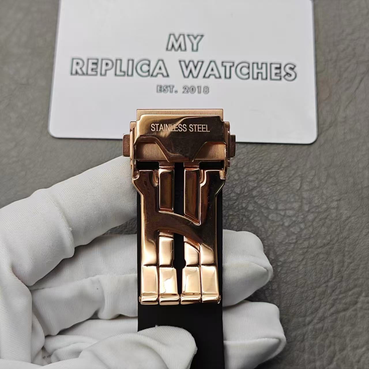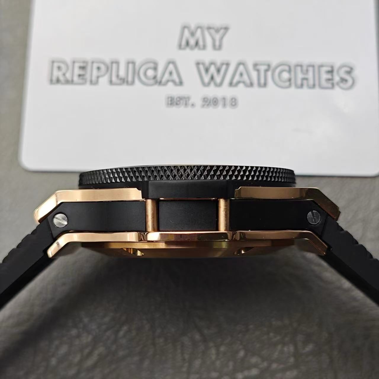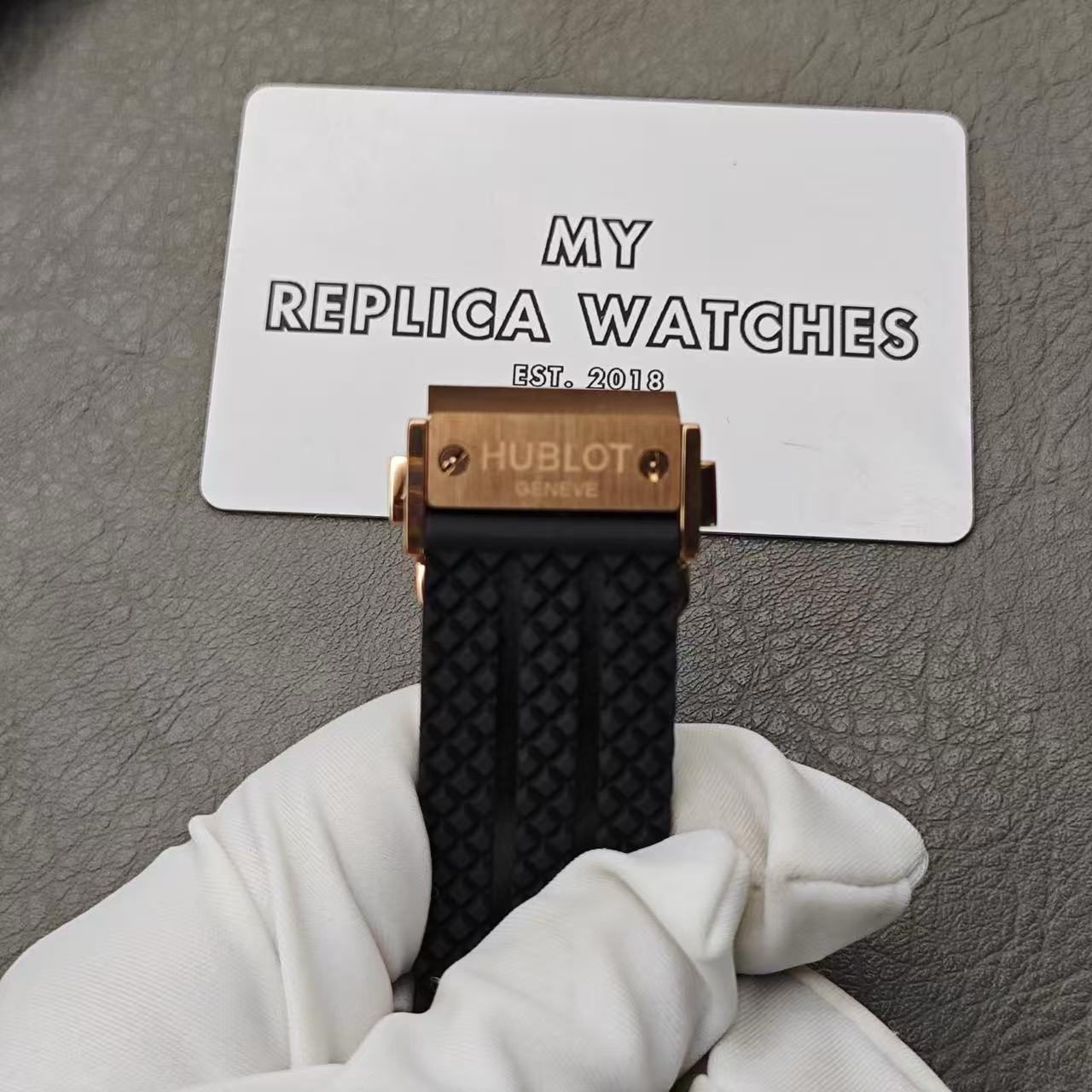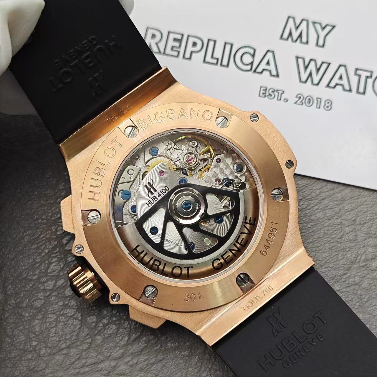 The Hublot Big Bang Steel Rose 301.PB.131.RX Replica is a luxury watch that is sure to turn heads. It features a 904L stainless steel case and bezel, both in rose gold, with a black sapphire crystal. The movement is an automatic HUB44 caliber with a 60-hour power reserve and precision of -3/+3 seconds per day within COSC certification limits. The bracelet is made of rubber and is adjustable for all sizes, with a 904L stainless steel fold clasp.
