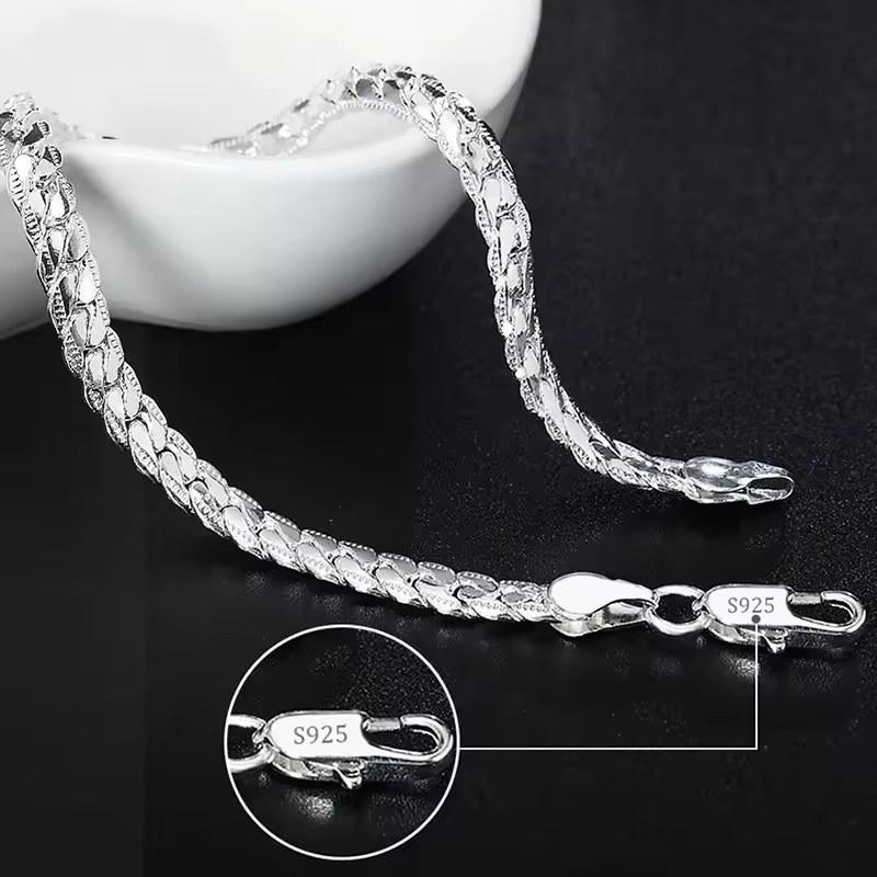 Noble 925 Sterling Silver Square Solid Chain Bracelet For Women Men Charm Party Gift Wedding Fashion Jewelry