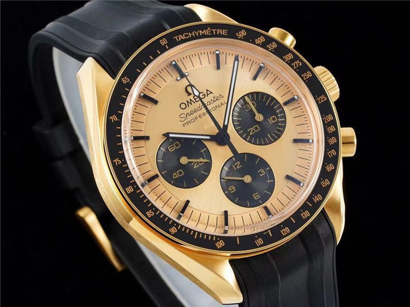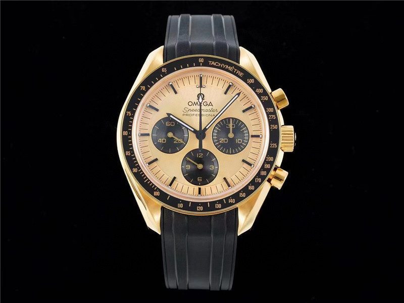 RM has a big move, “Yu Wenba” is coming! 2022 Legendary Space Watch-Omega Speedmaster Moonwatch Moonshine 18K Gold The 42mm case is made of Moonshine 18K gold, polished and brushed. Its shape is inspired by the asymmetrical case of the fourth-generation Speedmaster watch that landed on the moon. The arched minute hand and central chronograph second hand follow the iconic pointer style of the Speedmaster ‘Moon Watch’. The Moonshine 18K gold crown is embossed with the brand logo, and the chronograph buttons are also made of Moonshine 18K gold. The ‘stepped’ dial is made of 18K Moonshine gold with a sun-brushed finish. The tachymeter scale on the ceramic bezel is made using OMEGA Ceragold technology and features the “Dot Over Ninety” (DON, with the dot at 90 located above the number) logo of early Speedmaster models. The outer ring of the transparent case back is also made of Moonshine 18K gold. It is polished and has a double-bevel design. It is engraved with “THE FIRST WATCH WORN ON THE MOON” and “CO-AXIAL MASTER CHRONOMETER”. Through the flat sapphire glass case back, you can appreciate the beautiful operation of the 3861 Master Chronometer movement. Another exquisite masterpiece from RM factory, welcome to taste it!