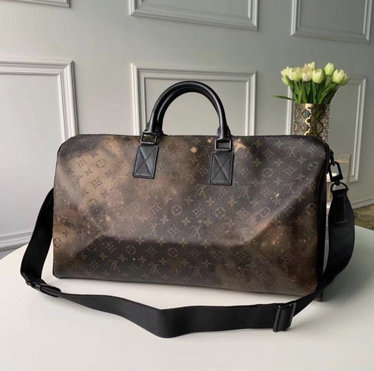 Replica 1:1 Clone Louis Vuitton Keepall Bandouliere Monogram Galaxy 50 Black Multicolor