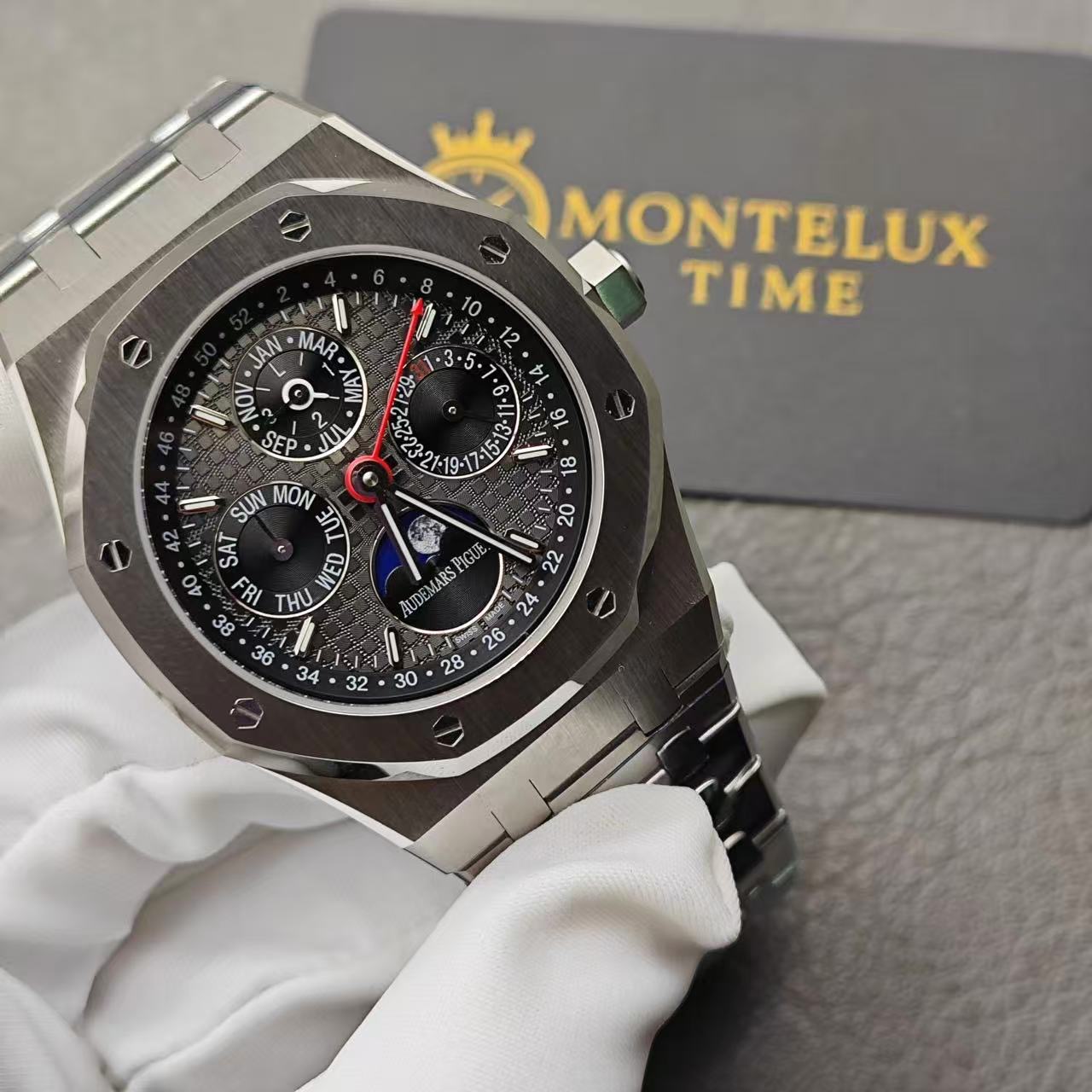 - Authentic Aesthetics – Faithfully replicates the Royal Oak Perpetual Calendar 26609TI’s iconic titanium case, gray dial, and integrated bracelet