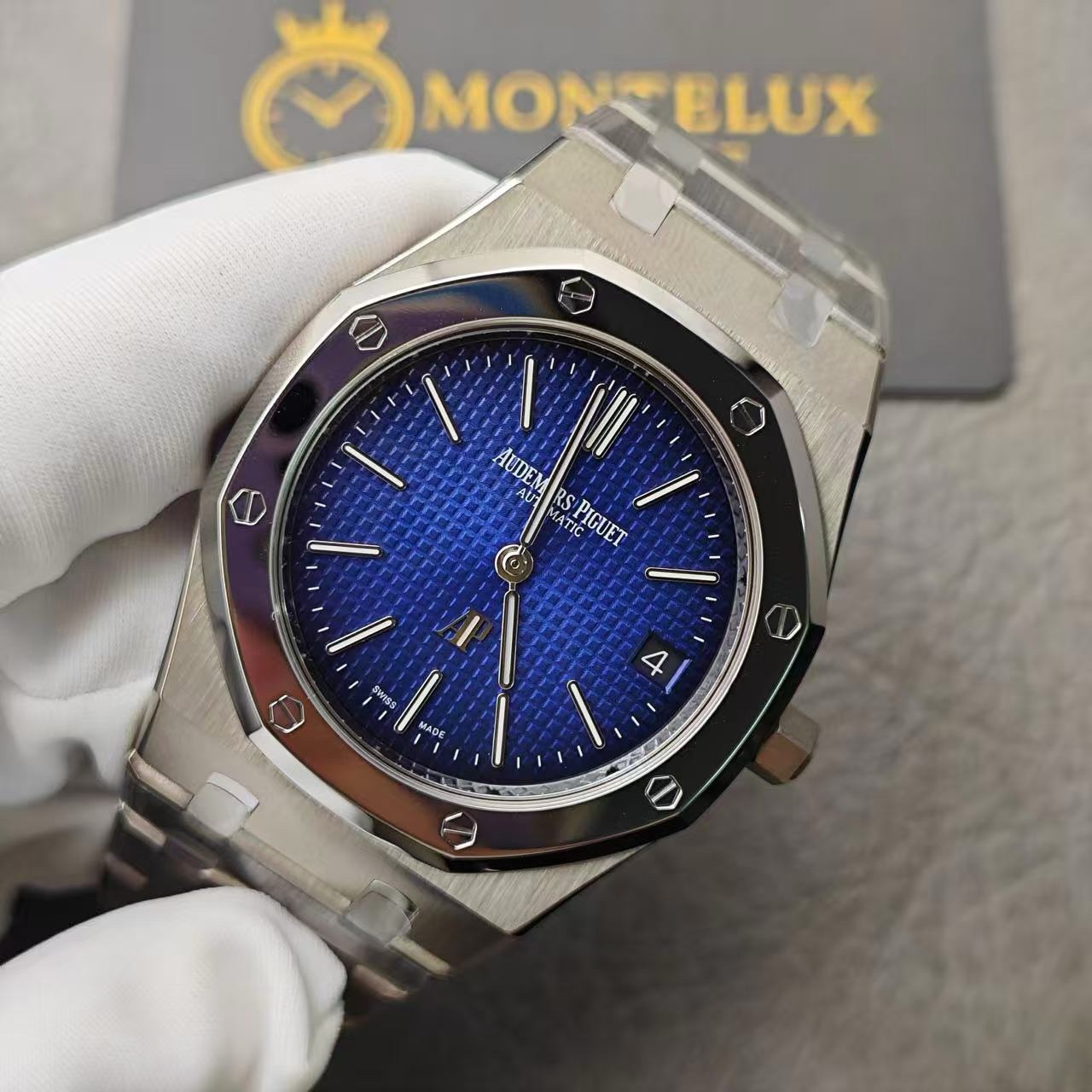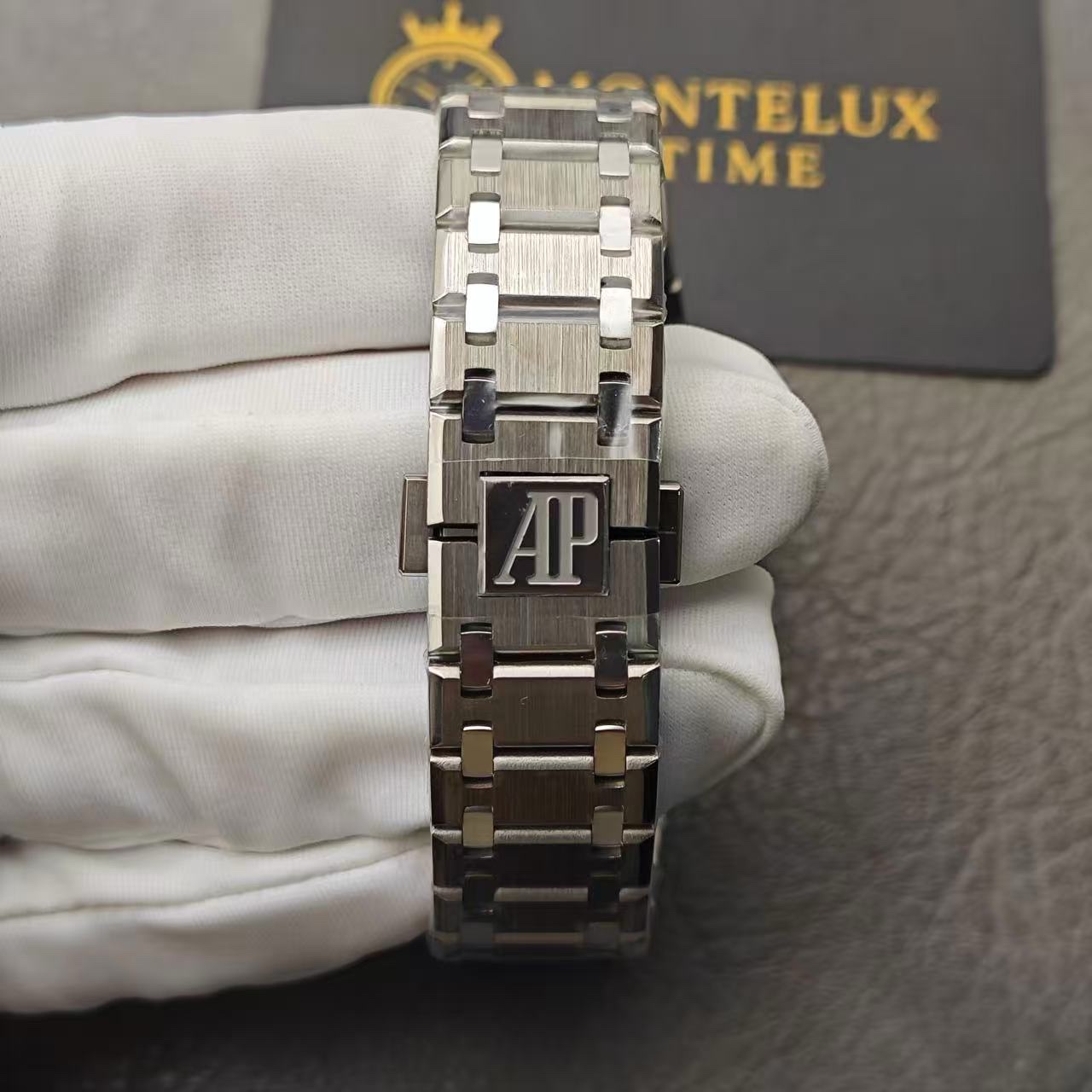 Powered by a precise automatic Swiss-clone movement, it delivers smooth timekeeping and the authentic sweep-second hand motion. The slim titanium construction, folding clasp, and signature octagonal bezel ensure comfort, durability, and unmistakable Royal Oak prestige — at a fraction of the original price.