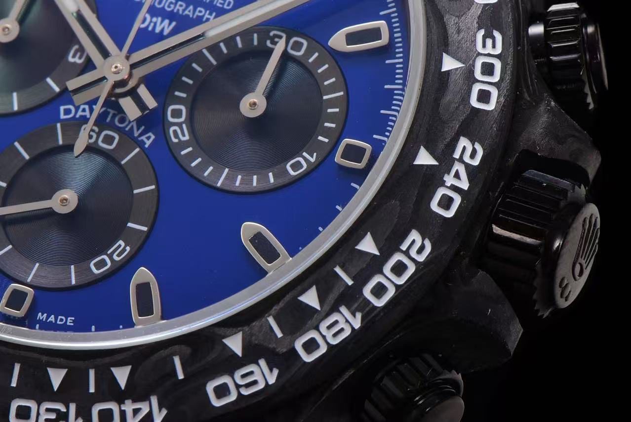 Limited Stock Alert: Only a few of this DiW Rolex Daytona Miami Blue Carbon replica remain available. Restocking is uncertain, making this a rare opportunity to own one of the most striking and sought-after DiW Daytona designs.