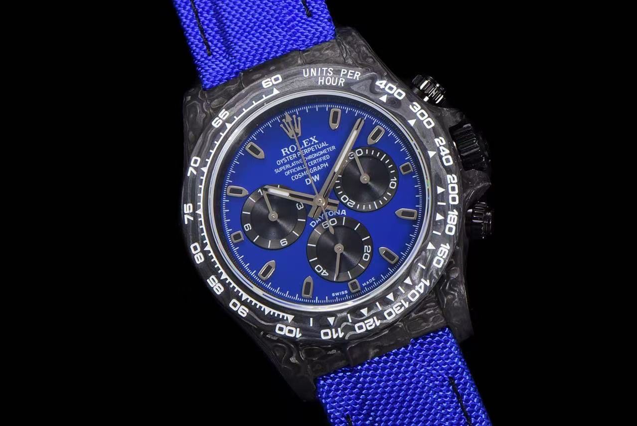 Secure your Replica DiW Rolex Cosmograph Daytona Miami Blue Carbon today – availability is strictly limited.