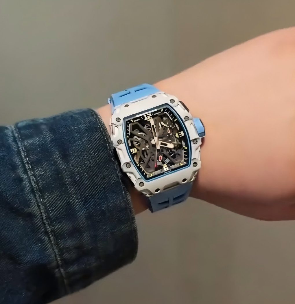 • Authentic Aesthetics – Faithfully replicates the RM 35-03 Rafael Nadal’s white carbon case, skeleton dial, and blue strap design