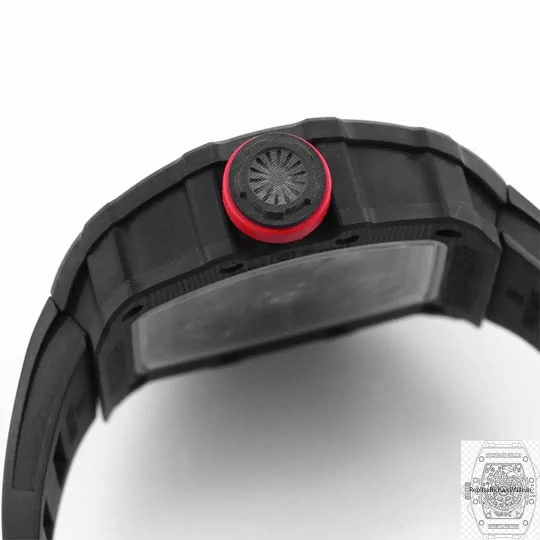 Dive into the world of luxury with the stunning replica Richard Mille RM35-02, now in a sleek black carbon fiber design. This watch isn’t just a timepiece; it’s a statement of style and sophistication, offering the perfect blend of technology and aesthetics. The black carbon fiber case is not only eye-catching but also incredibly durable and lightweight, making it comfortable for everyday wear.