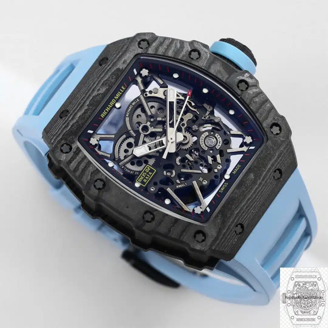 Discover the world of luxurious timepieces without the lavish price tag with our Replica Richard Mille RM35-02. Adorned with a stunning blue rubber strap, this watch is a masterpiece of craftsmanship and style. Not only does it mimic the sophisticated look of the original, but it also offers durability and comfort that can keep up with your daily adventures. The bold design and standout color make it a perfect accessory for any outfit, ensuring you look your best at all times.
