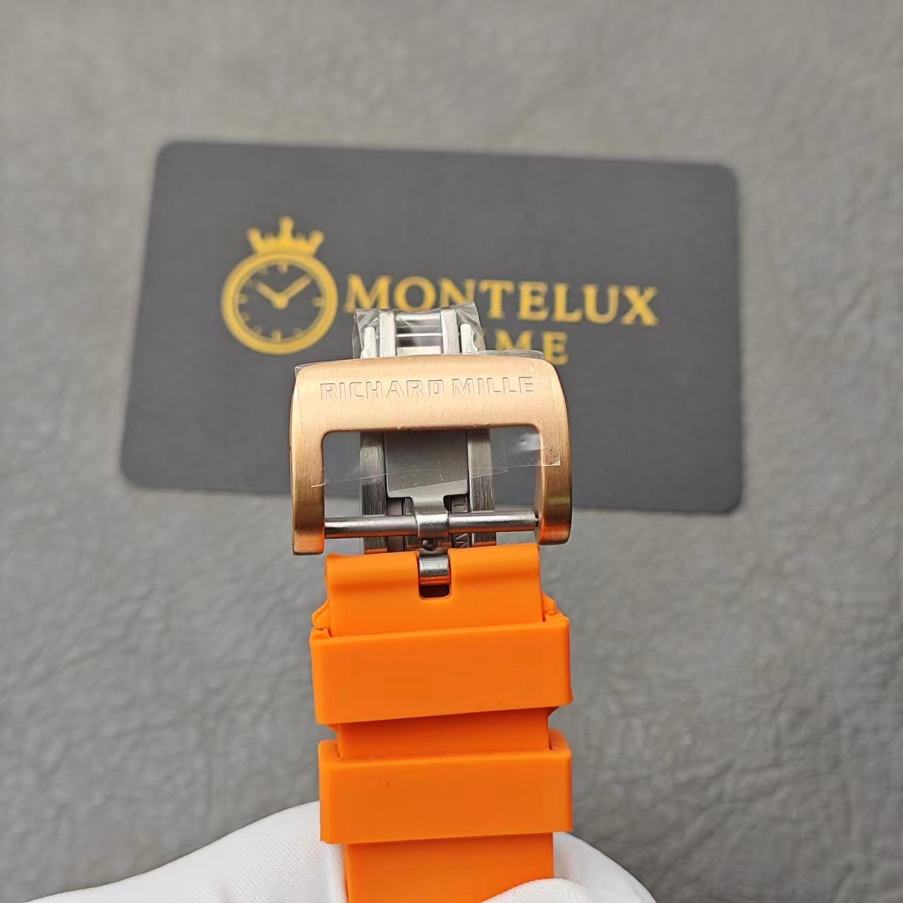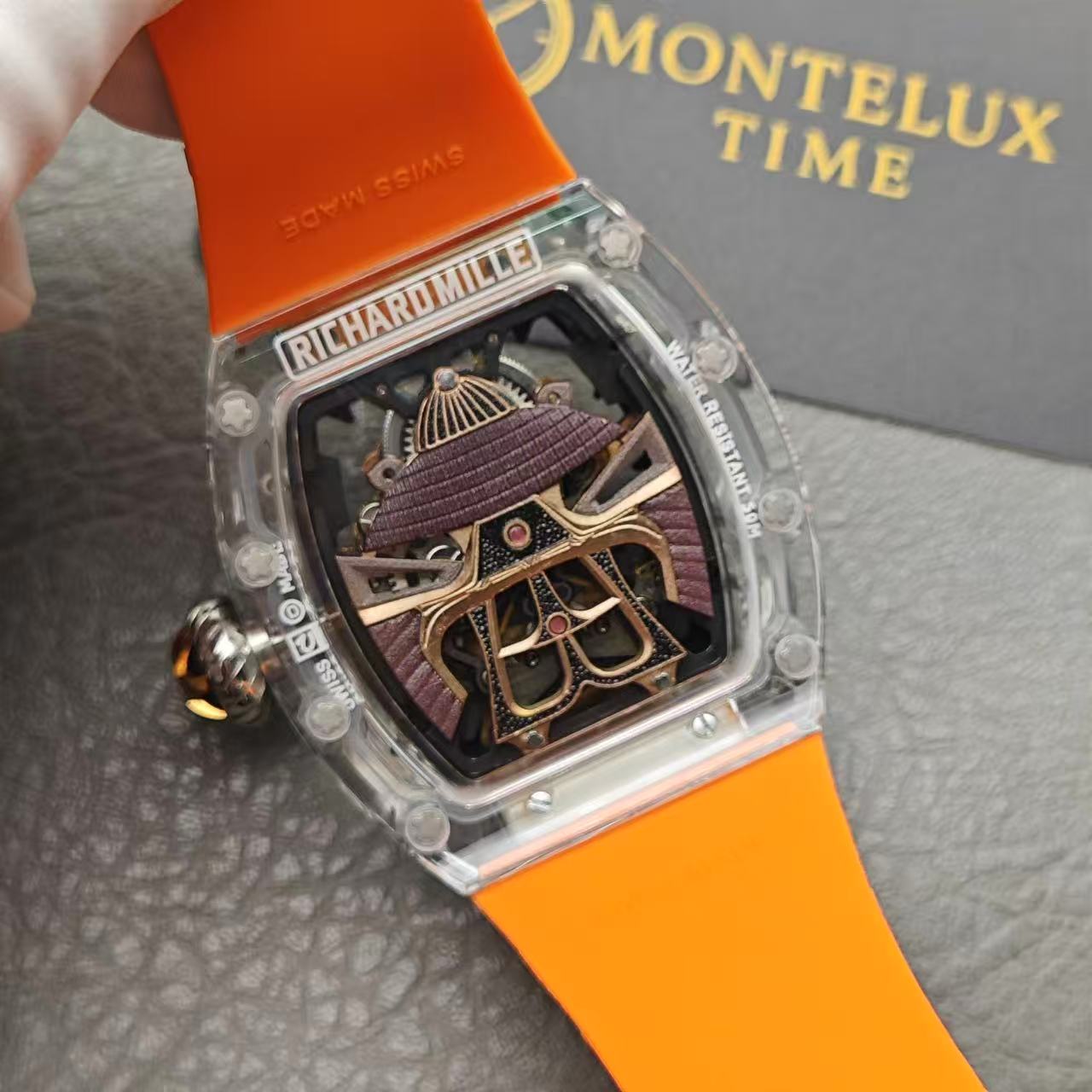 Introducing the cutting-edge replica RM 047 New Samurai Armor with an eye-catching orange strap. This watch is a perfect blend of traditional samurai spirit and modern luxury, crafted for those who admire the art of precision and style. Featuring a bold design, the RM 047 New Samurai Armor watch is not just a timekeeper, but a statement of strength and honor.