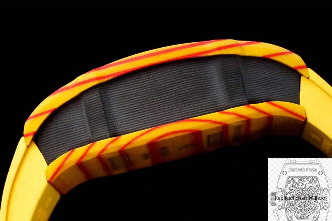 Introducing the replica RM 27-03 Rafael Nadal Tourbillon with a stunning yellow rubber strap! This marvel of modern engineering isn’t just a timepiece; it’s a statement. Crafted to mirror the original masterpiece created in collaboration with tennis star Rafael Nadal, it embodies the spirit of both precision and resilience.