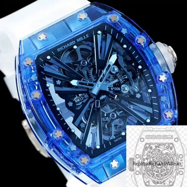 Embrace the beauty of sophisticated watchmaking with the RM12-01 Tourbillon Sapphire Clear Version. This magnificent replica not only pays homage to the world of luxury timepieces but also offers an exceptional experience for watch enthusiasts who value style, functionality, and affordability. Make a statement and elevate your wrist game with this exquisite watch.
