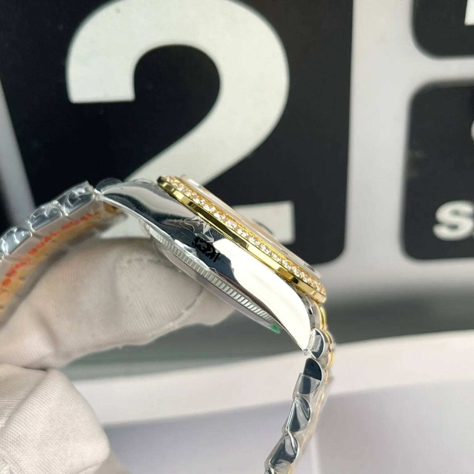 Authentic Aesthetics – Perfectly mirrors the Rolex Datejust 116243 with diamond bezel, champagne dial, and two-tone brilliance
