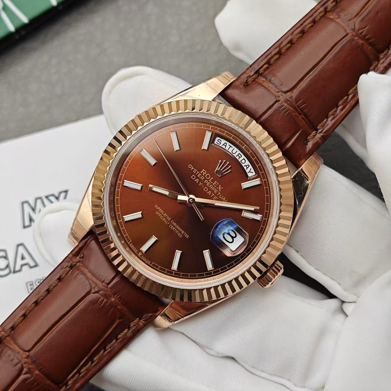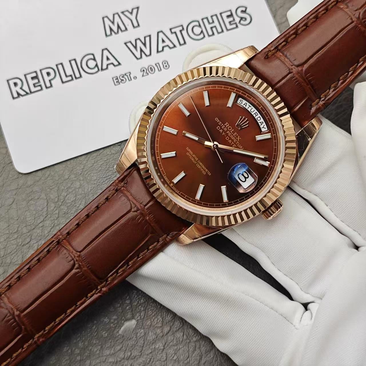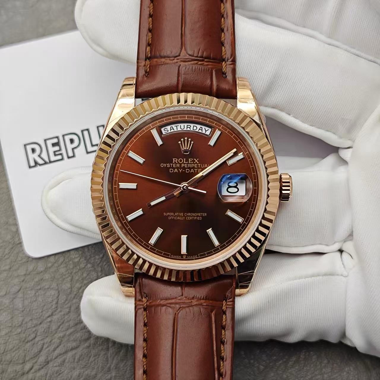 Backed by a full 2-year international warranty, the Replica Rolex Day-Date 118135 V5 Chocolate Dial Leather Band is a true testament to craftsmanship and exclusivity, making it a must-have for watch enthusiasts and collectors alike.