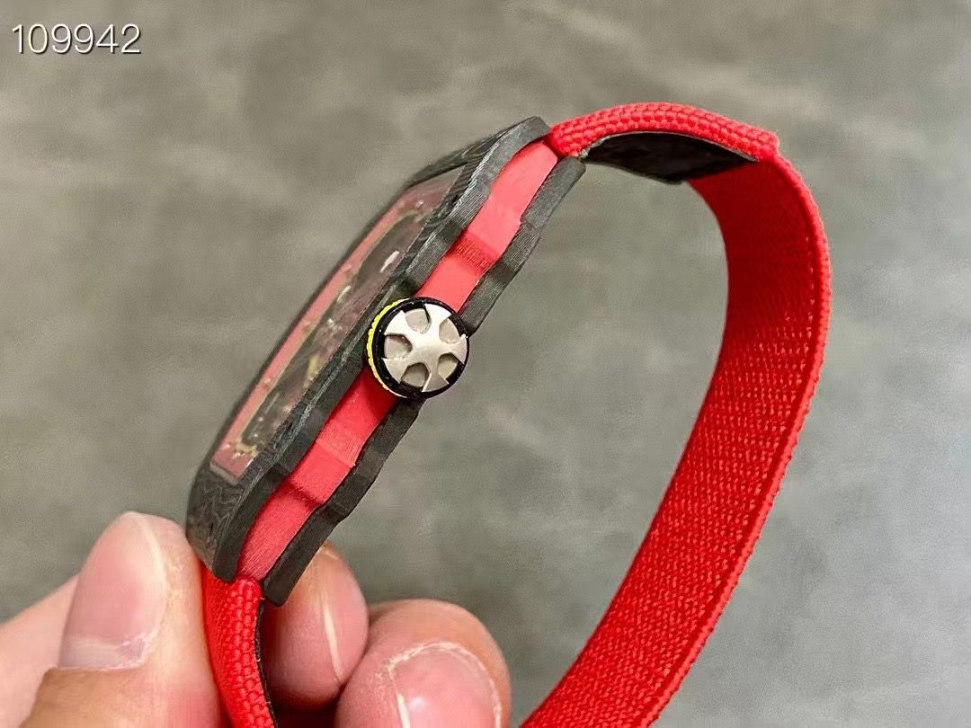 One of the key highlights of the Richard Mille 67-02 Super Clone is its lightweight design. Weighing only about 32 grams, it’s crafted with Carbon TPT technology and a Grade 5 Titanium case, ensuring durability and an ultra-light feel that makes it ideal for both daily wear and athletic use. Paired with a comfortable, elastic Velcro strap, this watch maintains a secure fit during any activity, exactly like the genuine Richard Mille 67-02, which was originally inspired by top athletes. This super clone replicates that vision with the same balance, comfort, and robust construction.