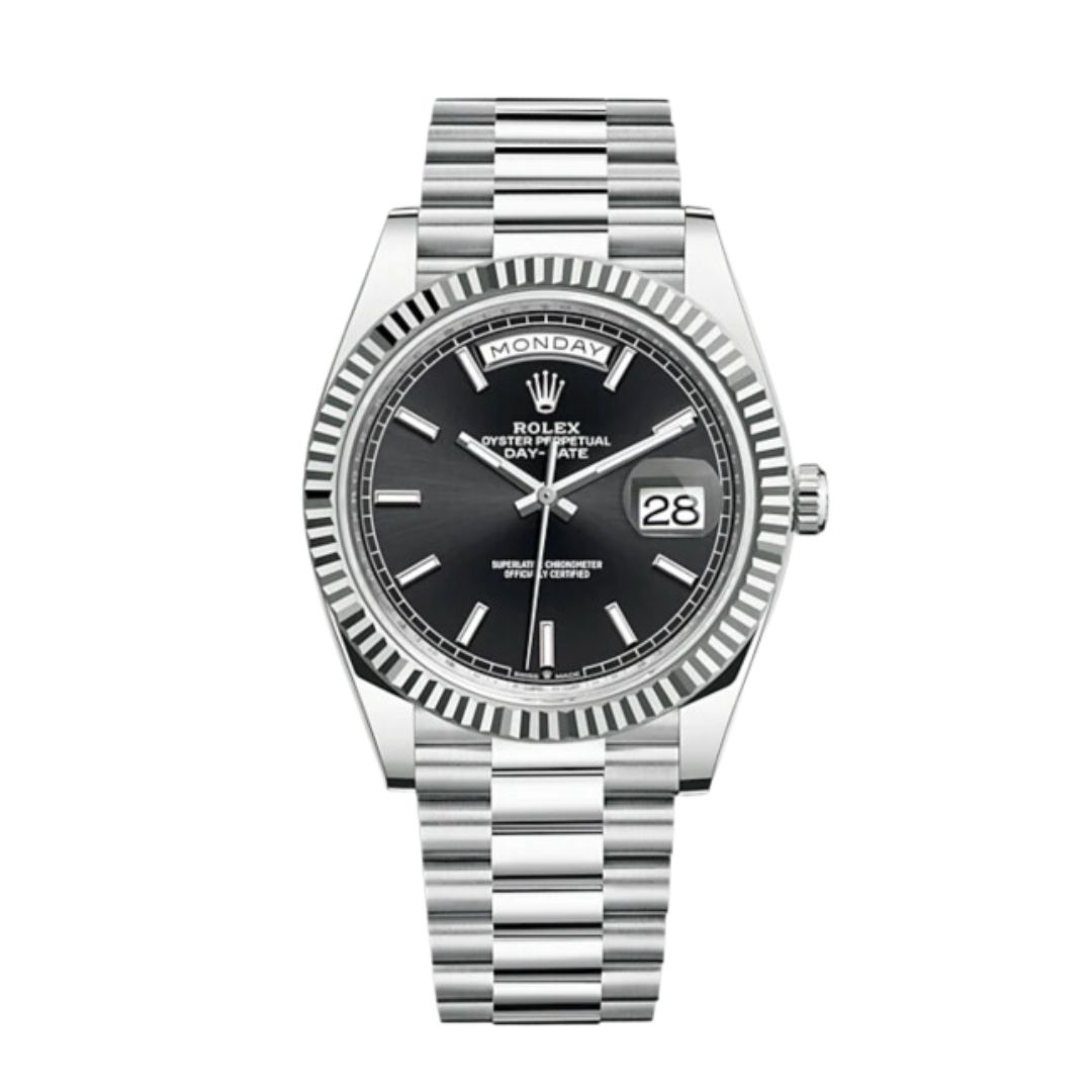 Rolex Day Date Silver with Black Dial Replica Clone Watch Model 2022