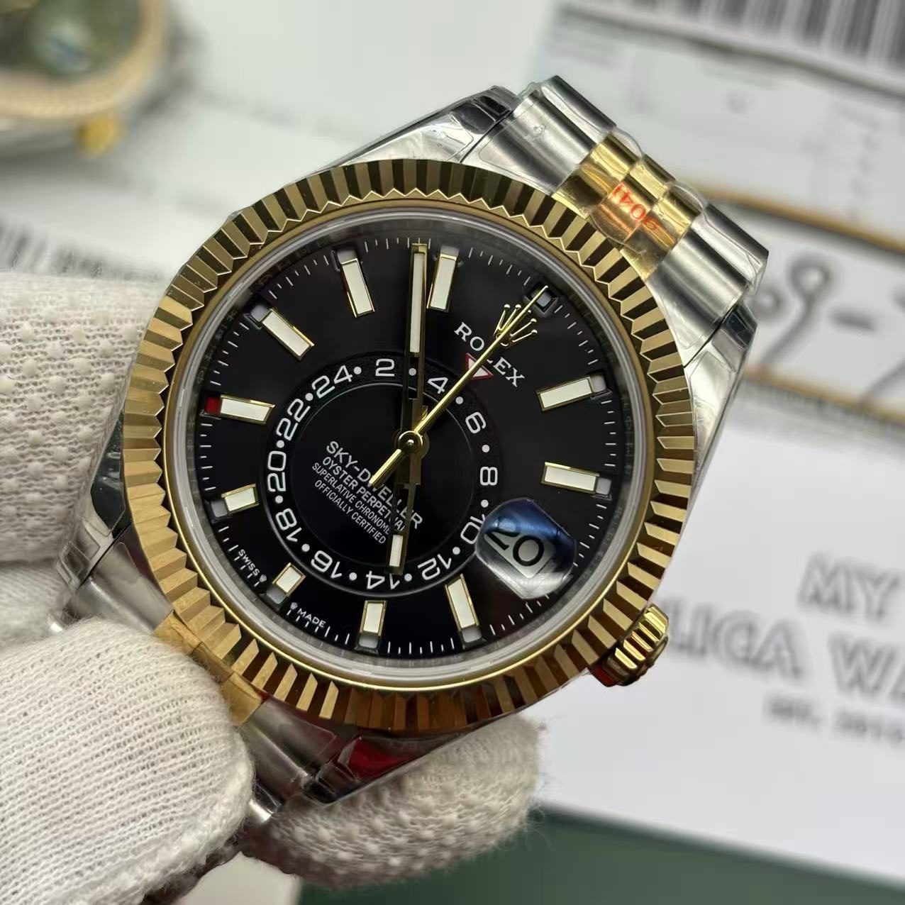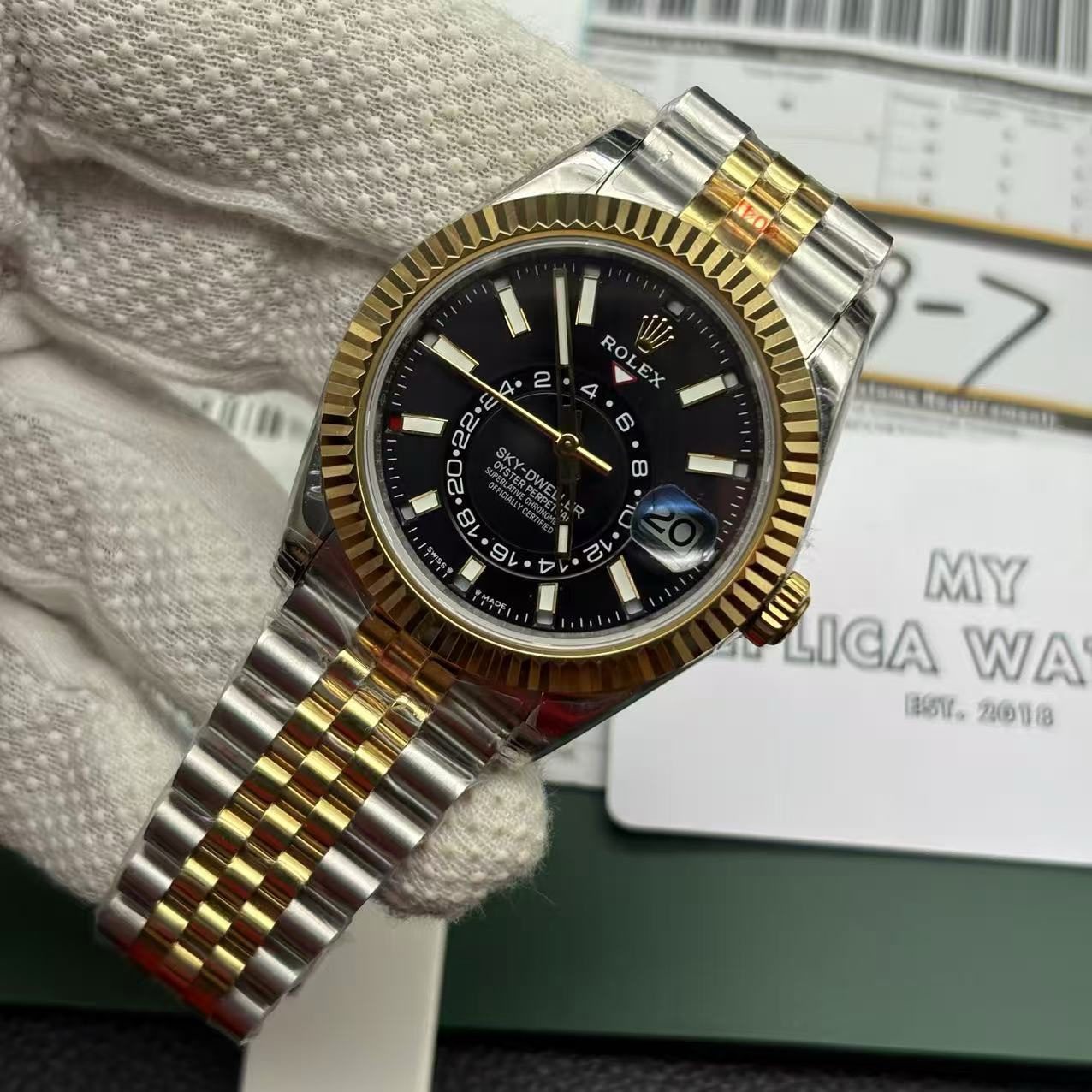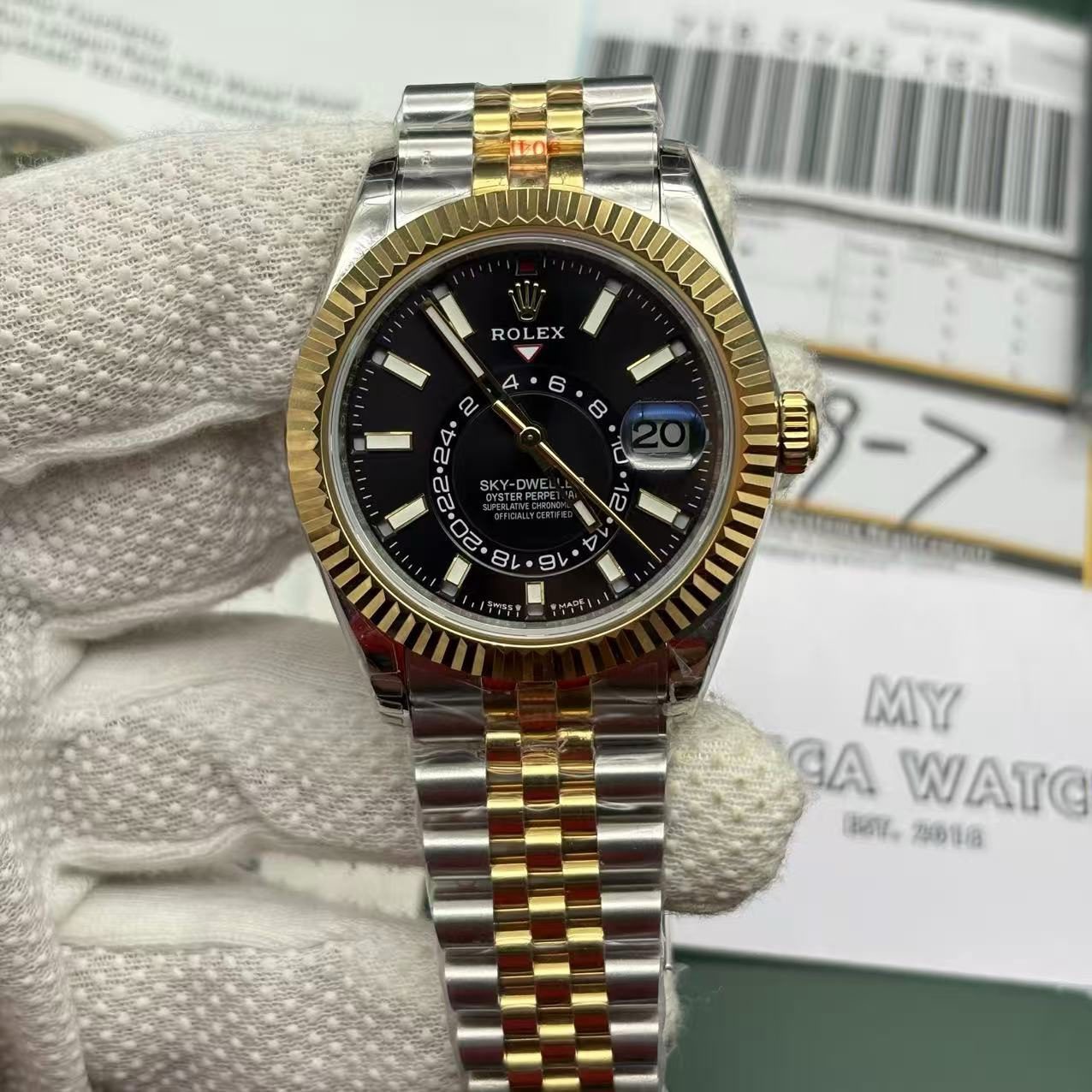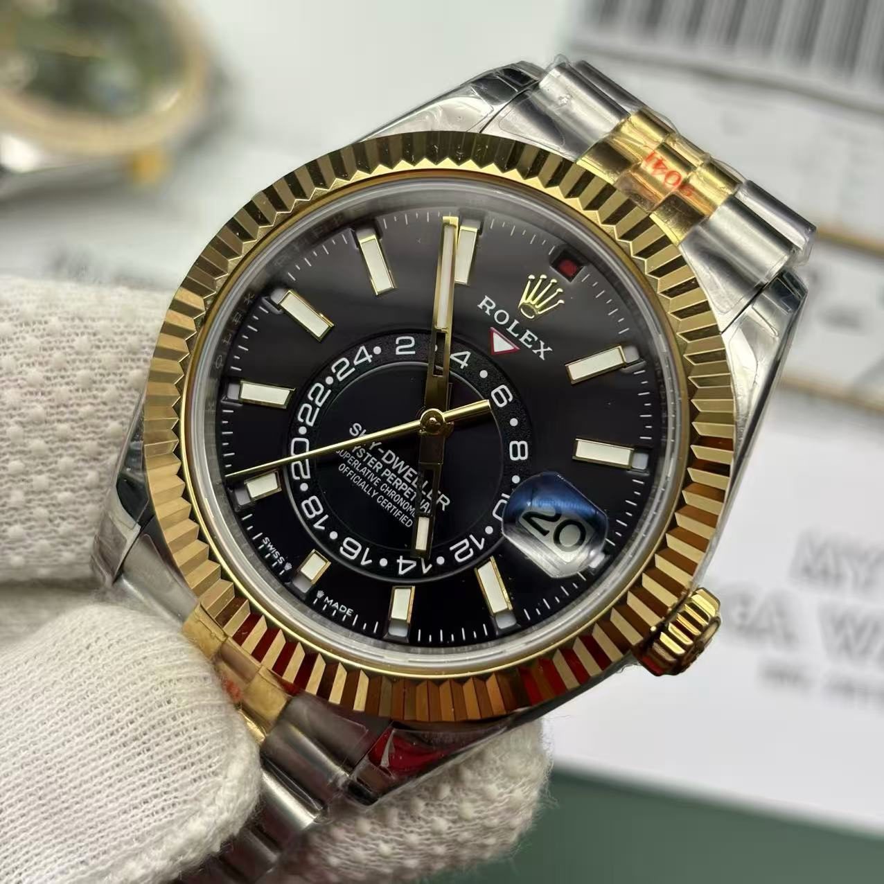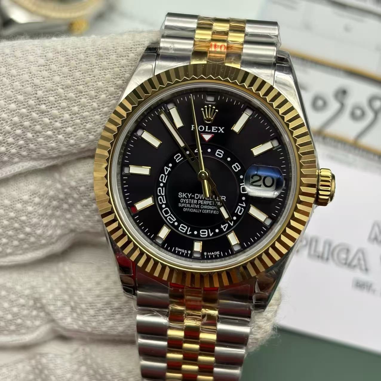 The Rolex Sky-Dweller 326933 Steel Gold Black Dial Replica is not just another watch; it’s an emblem of luxury and precision engineered to elevate your style. Imagine the smooth, cool touch of the 904L stainless steel against your skin, the gleam of the white gold bezel catching the light, and the intricate black dial providing a backdrop of elegance. This timepiece does not merely tell time; it tells your story of sophistication, excellence, and appreciation for fine craftsmanship. With its exceptional features and undeniable allure, this Rolex replica stands out as the best choice for those who demand excellence without compromise.