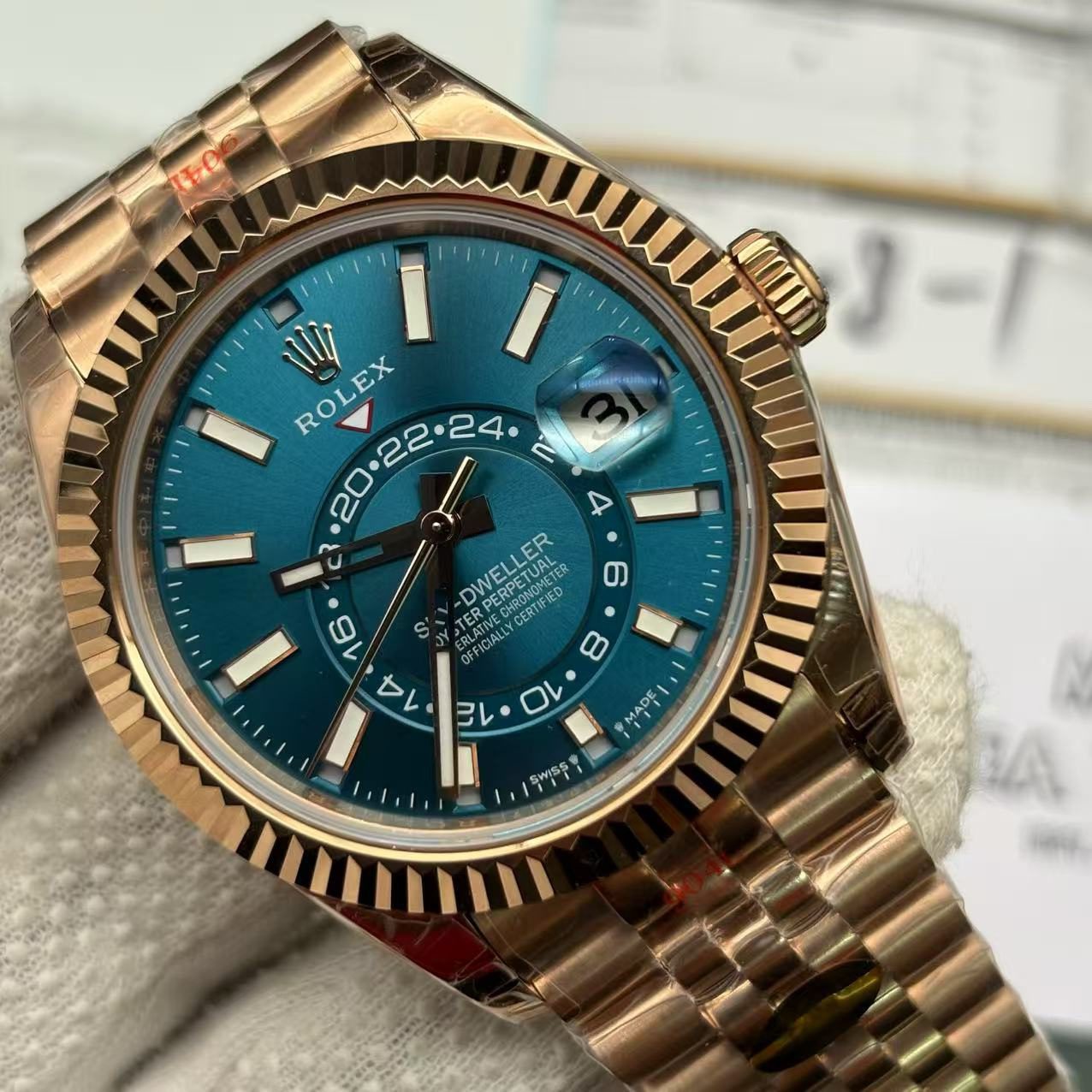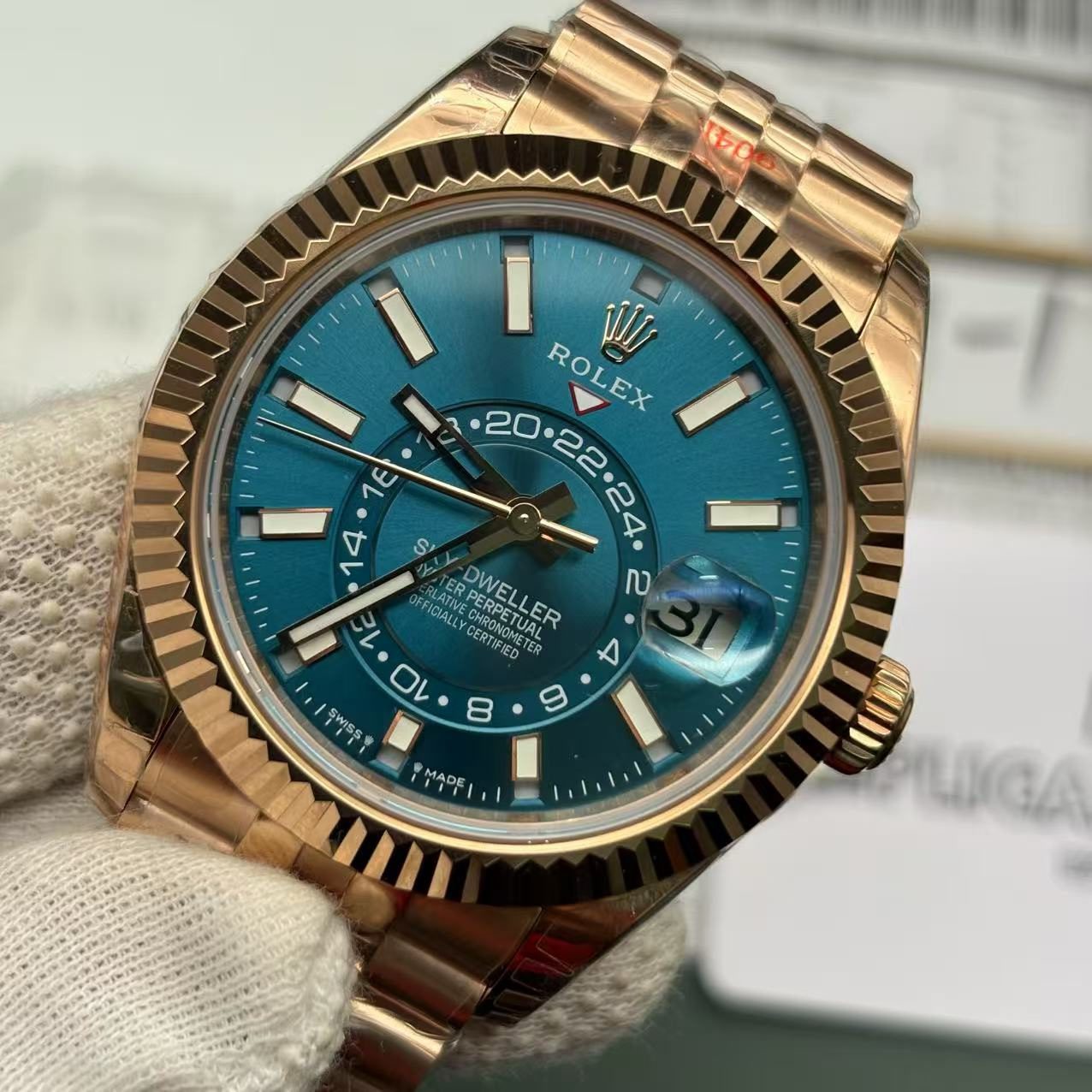 Imagine the timeless elegance and mechanical mastery of the Rolex Sky-Dweller 336935 Replica adorning your wrist. This exquisite timepiece is more than a mere accessory; it’s a symbol of sophistication, a statement of refined taste, and a testament to top-tier craftsmanship. The alluring rose gold hue, achieved through the meticulous use of 904L stainless steel, captivates at first glance, while the detailed rhodium dial with stick and dot indices exudes an understated yet powerful elegance.