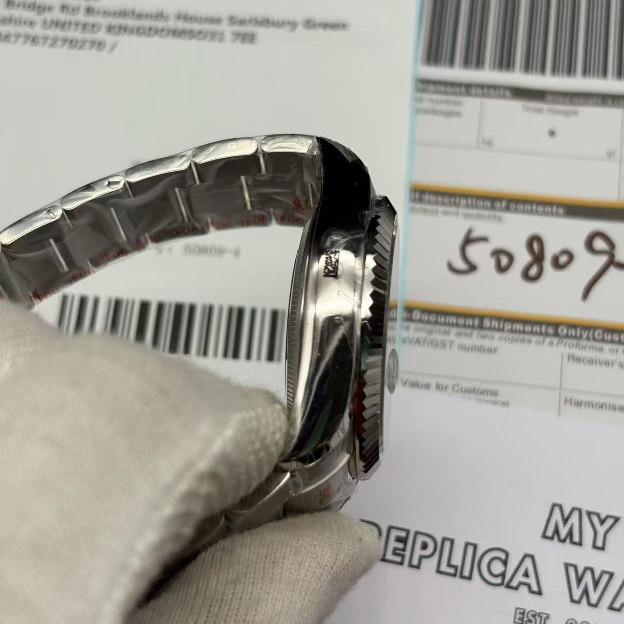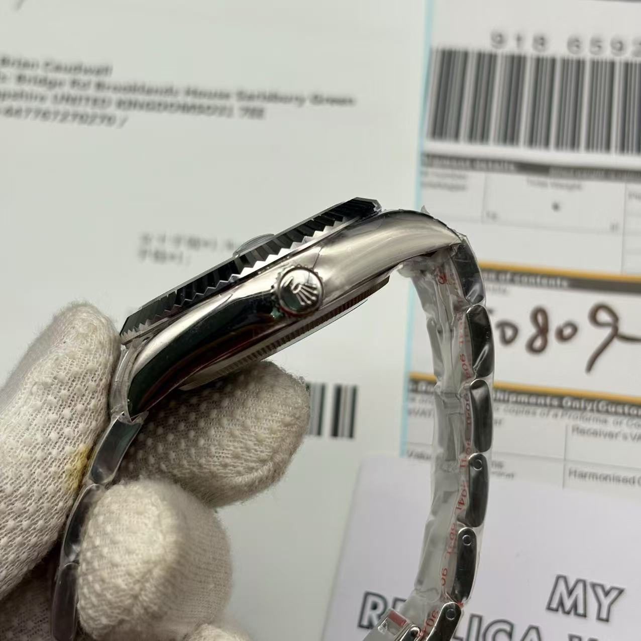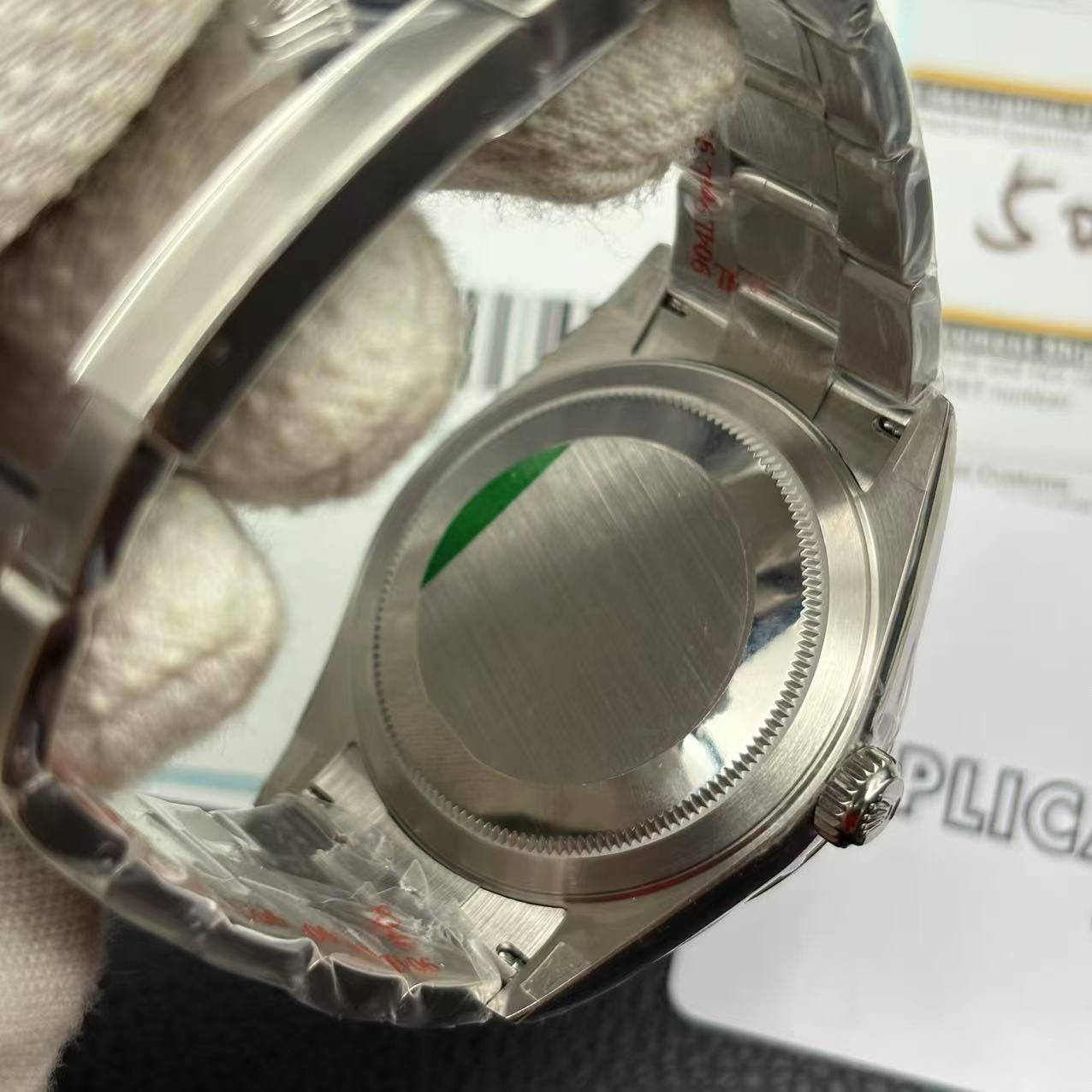 Underneath its striking exterior, the watch houses a formidable automatic Rolex 3135 caliber movement. This movement, renowned for its precision, operates within COSC certification limits, with a daily deviation of (-3/+3 sec/day). It boasts an impressive power reserve of 60 hours, ensuring that your timepiece remains accurate even if left unworn for a couple of days. The replica watch replicates the same serial numbers, font, and meticulous finishing as the original, ensuring an indistinguishable authenticity. Every aspect, from thickness to size, mirrors the original, making it a breathtaking substitute.