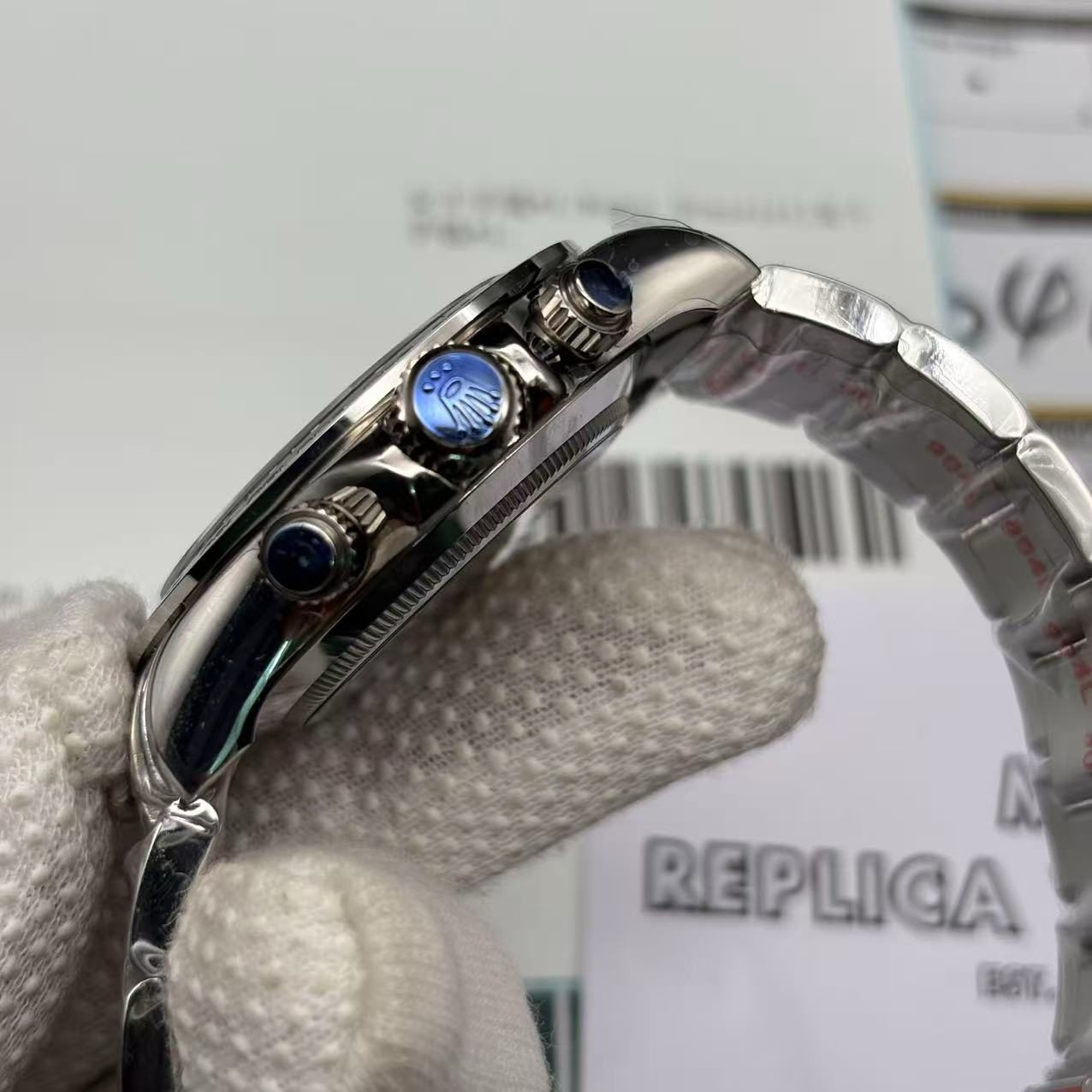 Every detail of this super clone has been engineered to mirror the original Daytona — from its finely brushed and polished 904L stainless steel case to the fully functional chronograph movement. The dial features the familiar tri-subdial layout, tachymeter bezel, and luminous hands, offering both style and precision in perfect harmony. What sets this model apart is the transparent case back, showcasing the replica of the Rolex Caliber 4130, a rare feature not even seen on most genuine Daytonas.