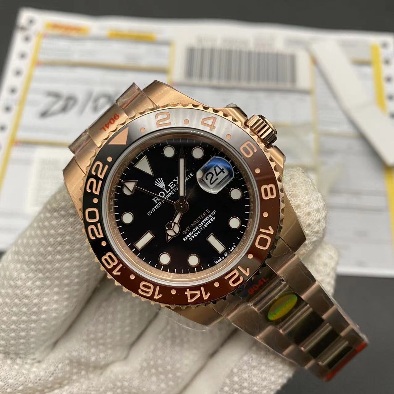 Shop today your Super Clone Rolex GMT Master 2 Rose Gold – Black Dial and receive it in 6-12 days.