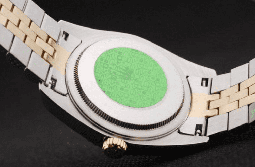 BACK Push in stainless steel back with green Rolex sticker and markings